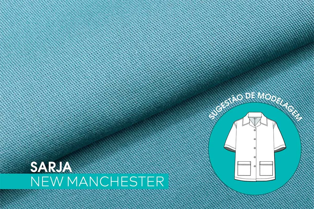 Modelagem: Recomendamos a Sarja para a confecção de uniformes industriais, devido à sua maior densidade e resistência. Essas características tornam o tecido ideal para a produção de peças mais amplas, proporcionando liberdade de movimento ao executar tarefas.